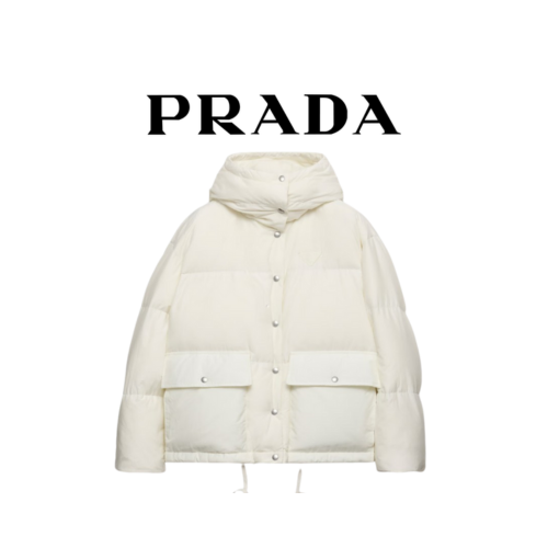 [2 COLOR] PRADA 후드 소프트 패브릭 다운 자켓
